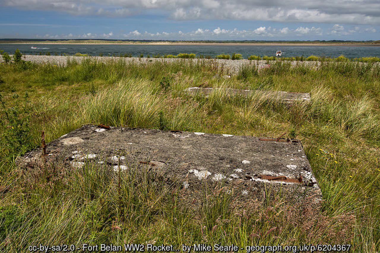 Safle lansiwr rocedi yw hwn o'r ail ryfel byd . Byddwch chi'n ei weld yn Fort Belan.