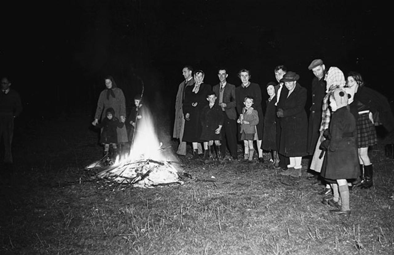 Image: sefyll wrth y tân