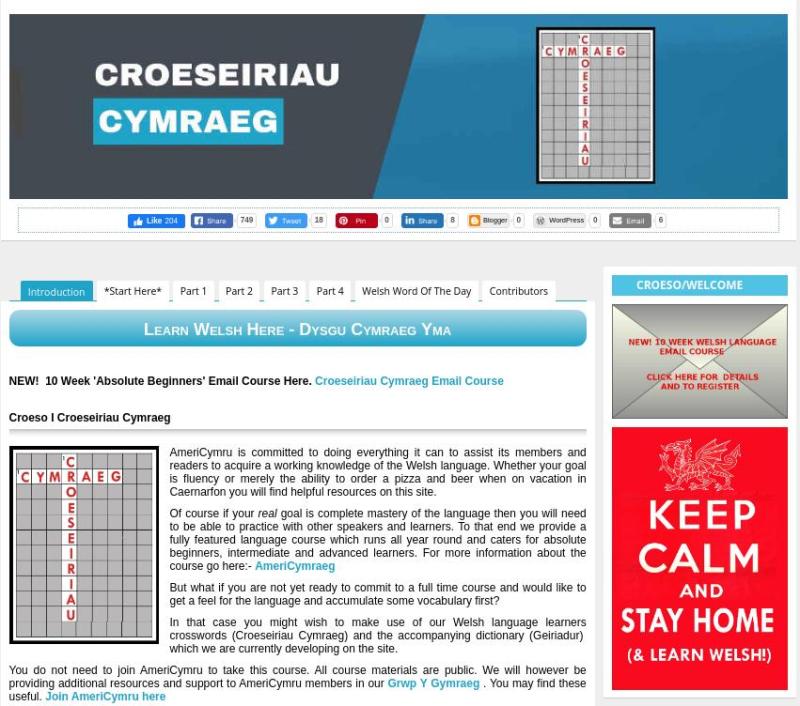 This resource is provided by AmeriCymru and is intended for Welsh learners who are not yet ready to commit to a full time course. With Croeseiriau Cymraeg you can devise your own schedule and learn at your own pace. Before you start please go to this page: Croeseiriau Cymraeg and read the 'Introduction' and 'How to Use' sections.