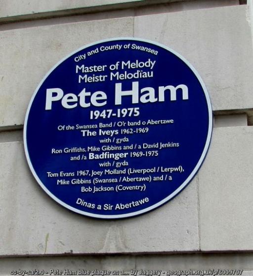 Band enwog o Abertawe oedd Badfinger. Pete Ham oedd eu canwr.