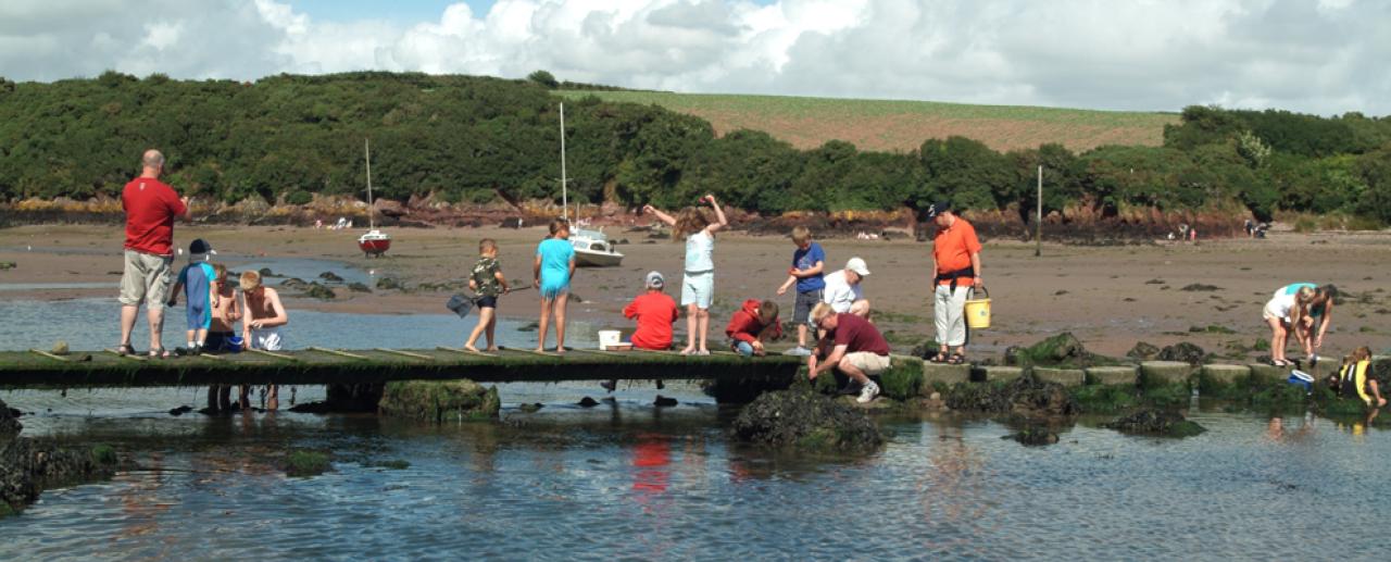 • Families fishing for crabs Sandy Bay Pembrokeshire