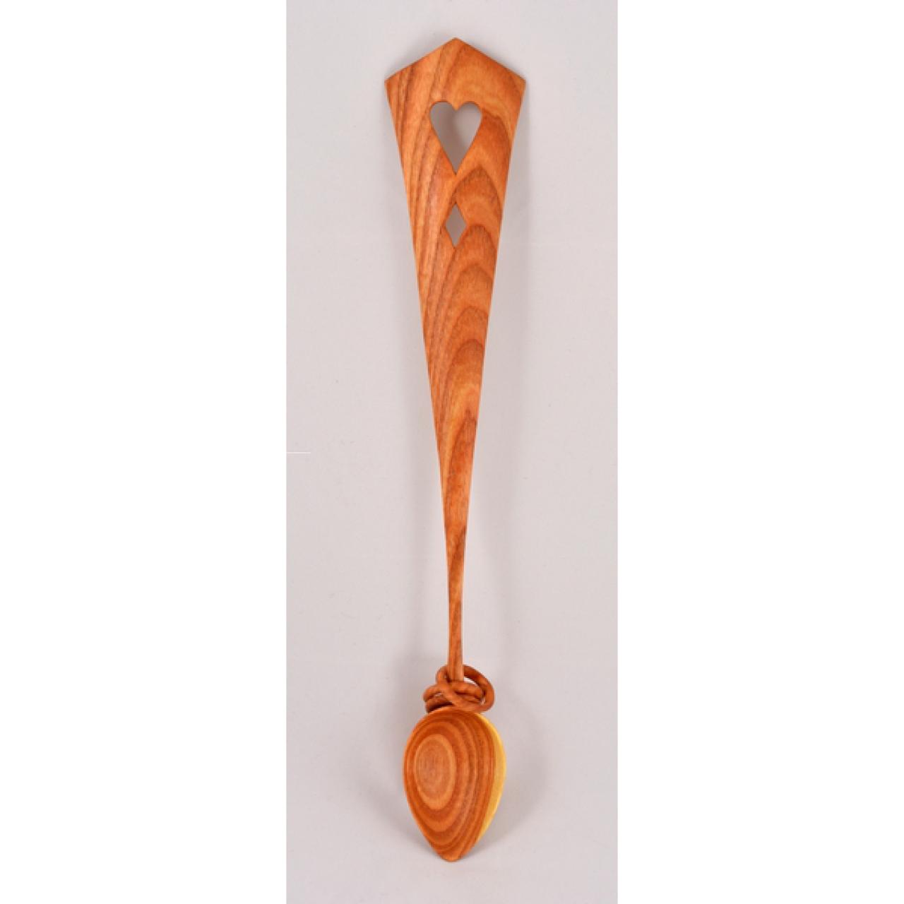 Panel lovespoon with diamond, heart, and three captive rings – in Honeylocust